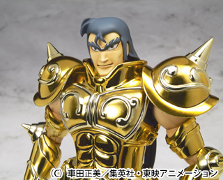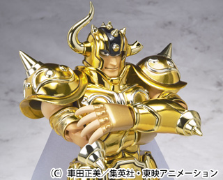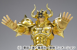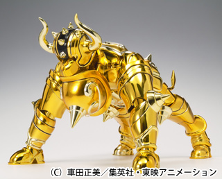 黄金十二宮第二の宮「金牛宮」を守護する牡牛座の黄金聖闘士:タウラスアルデバランが登場。他を圧倒する彼の巨躯を再現するべく、従来のものより一回り大きな新素体を使用、同シリーズ商品の中でもひときわボリューム感のある商品となっている。ペガサス星矢との戦いで折れた角も付属。角のある特徴的な聖衣を迫力ある造形で再現!