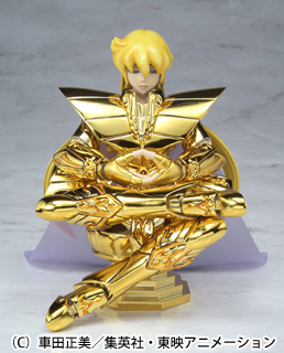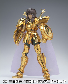 神に最も近い男「バルゴシャカ」が聖闘士聖衣神話で登場!広範囲の関節可動により座禅状態を再現できるだけでなく、冥王ハーデス十二宮編で使用した『数珠』、さらに閉眼、開眼の両状態のフェイスパーツがつき、非常にプレイバリューの高い製品になっている。別売りの「アンドロメダ瞬」にバルゴ聖衣を装着可能。布製マント、蓮華座つき。