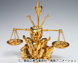 五老峰の老師こと天秤宮ライブラの童虎がついに聖闘士聖衣神話に登場。ライブラ最大の特徴である12個の武器が付属。各武器は金属パーツを使用し質感あふれる仕上がりになっており、他の聖闘士に装備させることもできる。閉眼状態の紫龍頭が付属しライブラ紫龍を再現可能。星矢、氷河と併せてポセイドン編のクライマックスを表現しよう!
