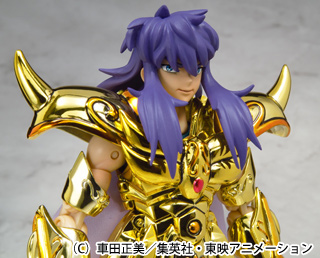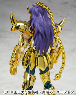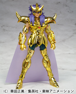 黄金十二宮第一の宮「白羊宮」を守護するジャミールのムウこと牡羊座の黄金聖闘士ムウが登場!聖衣のアイデンティティともいえる肩の大角はアニメ版&原作版の2種類が装備され、各テイストを楽しむことができる。また布製マントおよび、ムウといえば欠かせない聖衣修復具も付属。さらに、キャンペーン商品「教皇シオン」への装着も可能。