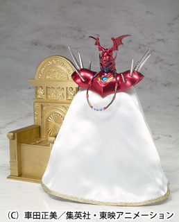 聖域の影の支配者、双子座・ジェミニサガがついに登場!ジェミニ頭部は「善のサガ」「悪のサガ」「双児宮の謎の聖闘士」の3状態を再現可能。そして彼のもうひとつの姿、「教皇アーレス」も素体、玉座とともにセット…という、これでもかとばかりの超豪華仕様!劇中の様々なシチュエーションを再現できるぞ!聖衣は双子座オブジェに組み替え可能。