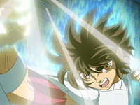 嘆きの壁の前にそろった5人の黄金聖闘士、ムウ・シャカ・アイオリア・ミロ・そして童虎。ライブラの武器をそれぞれが手にし、嘆きの壁に向かい放つが、無情にも跳ね返されてしまう。最強の聖闘士の力でも嘆きの壁を破壊できないと思ったその時、星矢たちの前に数条の黄金の光が飛来する!
