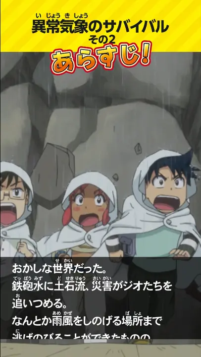 どんな困難に立たされても「絶対にあきらめない!」と奮闘する、“サバイバルの達人”ジオたちと、“サバイバルの天才”ダイヤたちが、仲間とともに“勇気”と“科学”でピンチに立ち向かう!