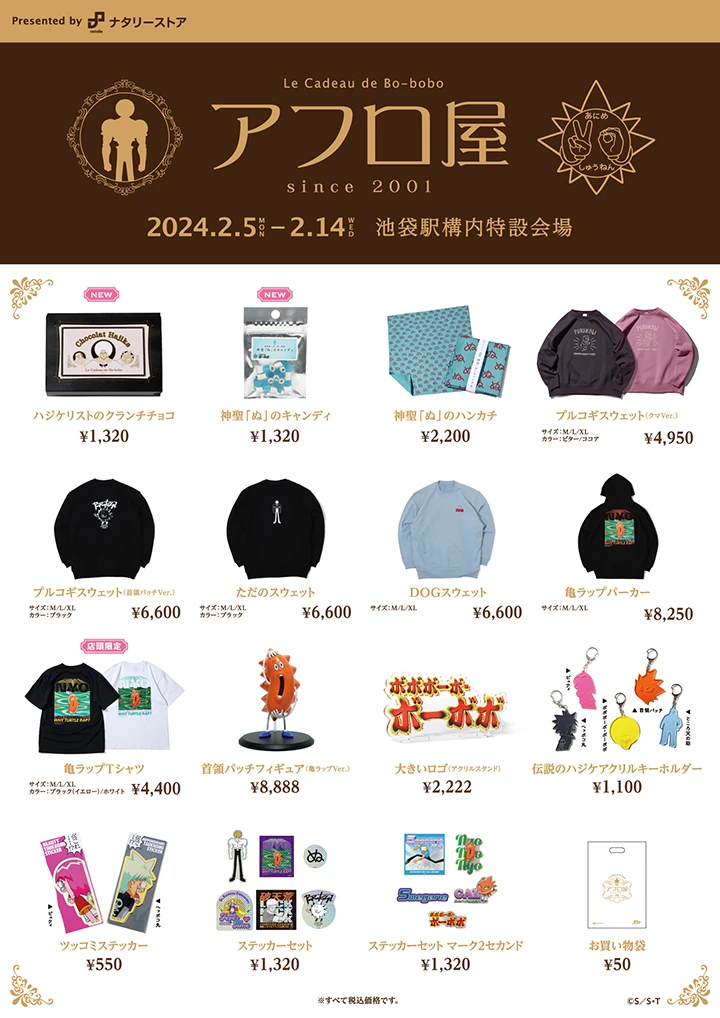 「ボボボーボ・ボーボボ」のポップアップストア「アフロ屋」が2年ぶりに池袋にオープン。ハジケリストのバレンタインにぴったりな逸品をご用意いたしました。