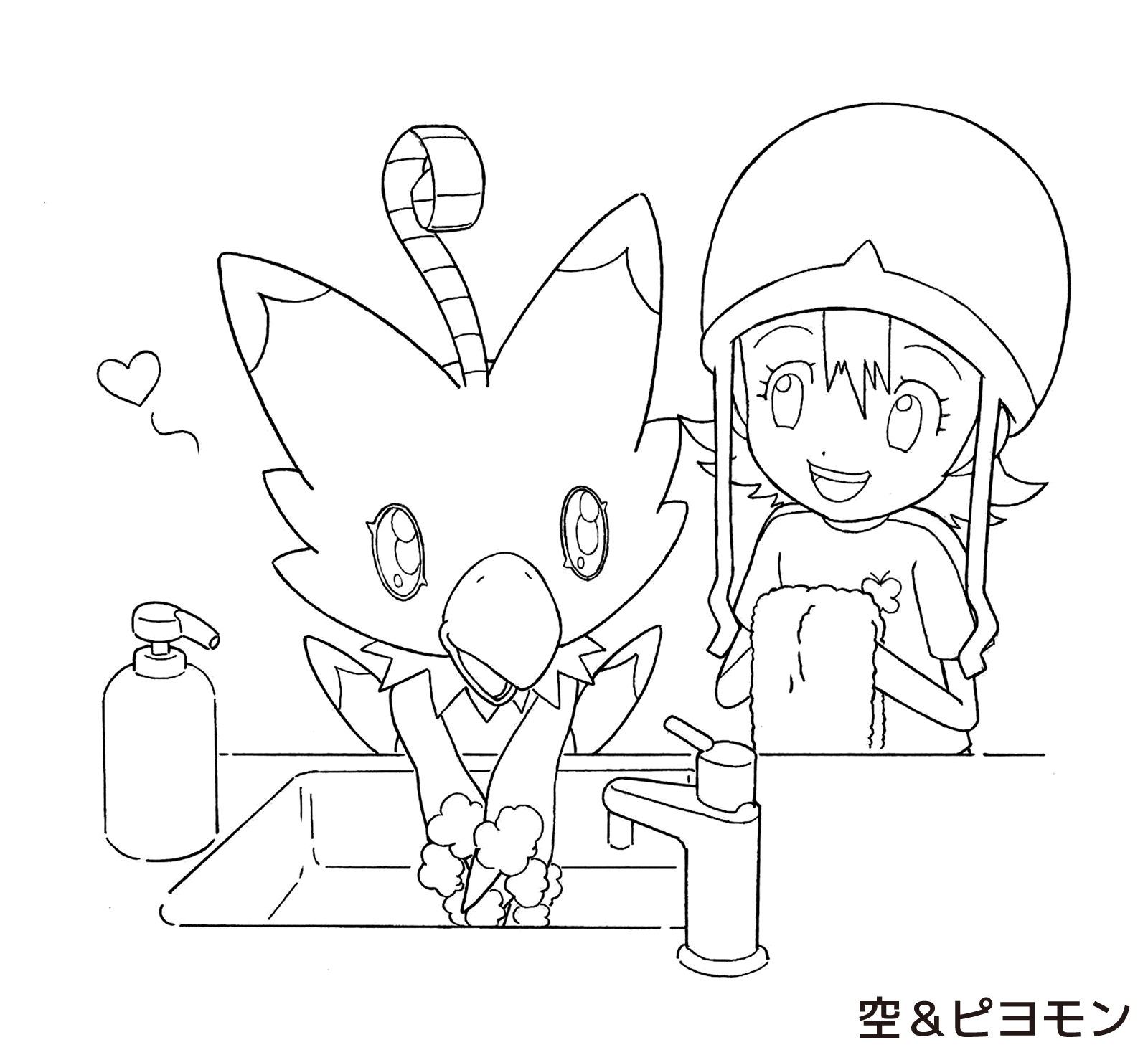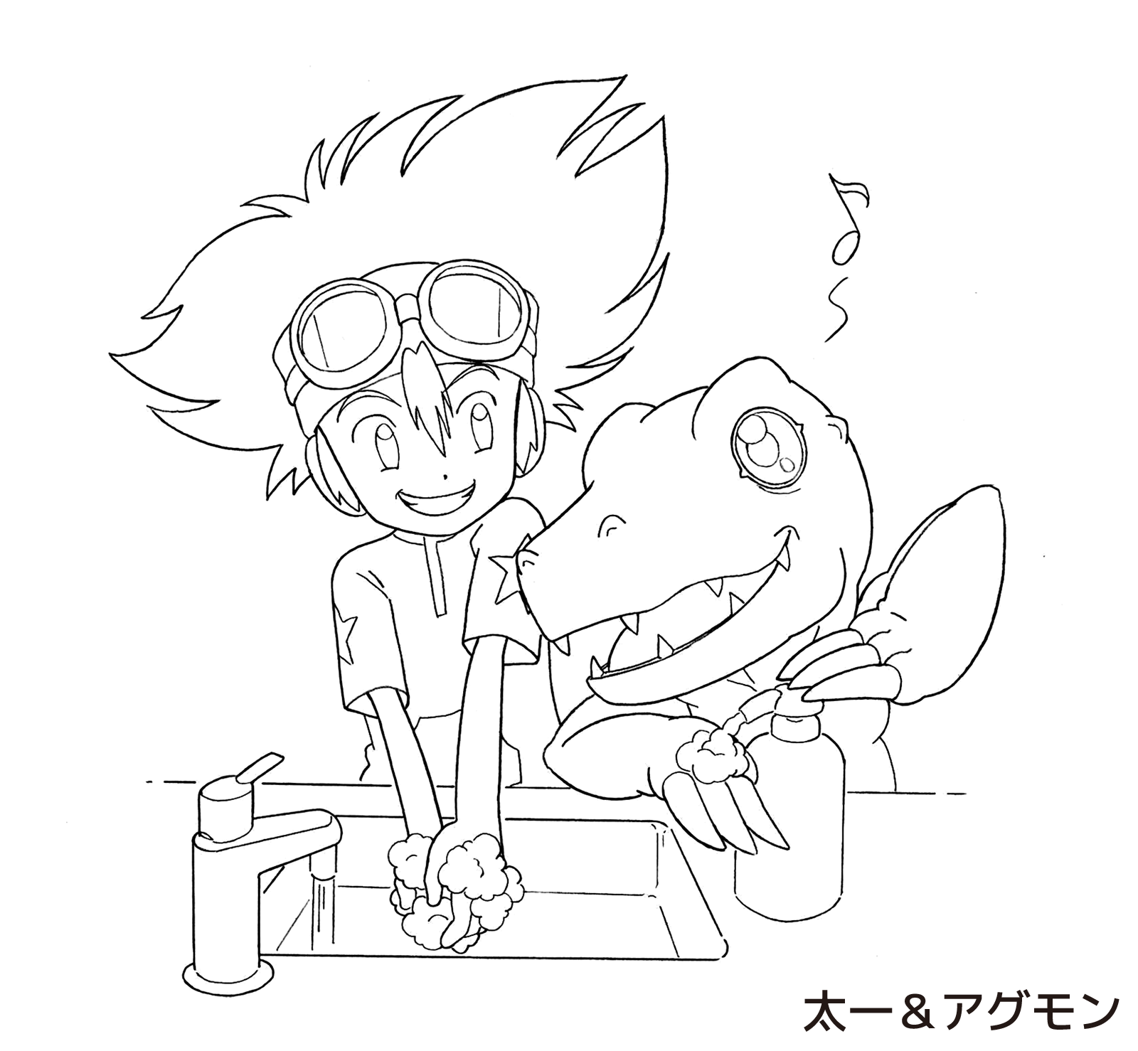 デジモンといっしょに手をあらおう!「デジモンぬりえコンテスト」