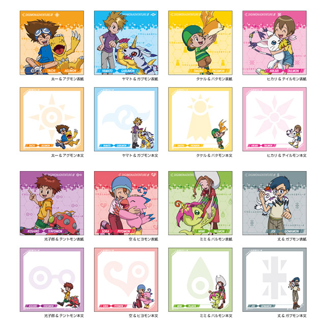 「デジモンアドベンチャー:」ブロックメモ 販売価格 380円(税別) 発売日 2020年9月中旬 メーカー (株)ショウワノート 選ばれし子どもたちとそれぞれのパートナーデジモンたちとのデザインのブロックメモが登場!300枚綴りとたっぷり使える、92×92mm正方形のメモ。