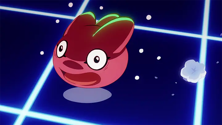 生まれたての新種デジモン。ゲル状の赤い体はプニプニしていて、頭部には3つの触手のようなものが生えている。戦うことができず、酸性の強い泡をだして敵を威嚇する。