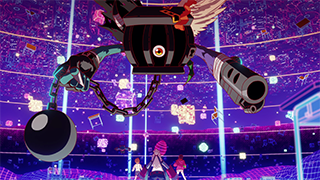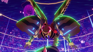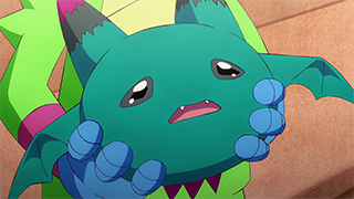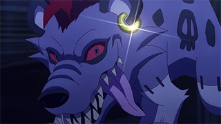 メイン装備である左腕の武器「デッドショット」は封印したデジモンからロードしたもの。必殺技は檻から放つ霧で敵の体の自由を奪う「ヒンダーマイアズマ」。この技で動けなくなったデジモンの多くが、ミミックモンの体内に取り込まれている。