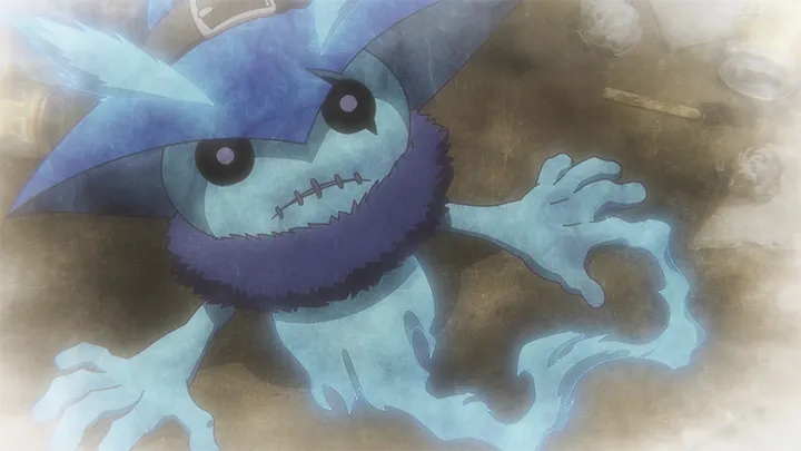 ゴースト型デジモン。手のひらから微弱なエネルギー弾を放つ『リトルプラズマ』が得意技。