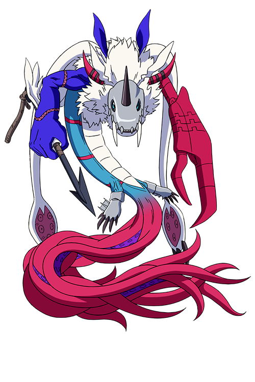ホノカのパートナー。様々な水棲系のデジモンのパーツを組み合わせ創られた合成型デジモン。 必殺技は全身を高速回転させ大渦を発生させる「ポセイドンボルテックス」。