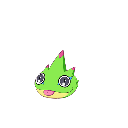 トモロウのパートナー、ゲッコーモンの幼年期の姿。極彩色の体表を持つスライム型デジモン。危険を察知すると口から『粘着性の泡』を吐いて相手の気をそらせ、その隙に逃げ出す。