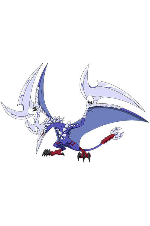 被膜状の大きな翼をもつ翼竜型デジモン。口から水晶の超高速砲弾を放つ『クリスタルキャノン』や、尻尾の先端についている水晶を振り回して殴打する『ハンマーストライク』から、獲物を両足でつかんで飛翔し上空から投げ落とす『ノーホープフォール』で地面に叩きつけてとどめを刺す。『クリスタルレイン』は、『クリスタルキャノン』を2回連続で発射し、飛翔中の水晶砲弾同士をぶつけて砕くことで散弾化する派生技。