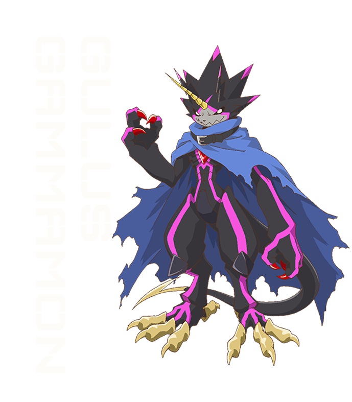 ガンマモンの内部に秘められていた悪なる心が解放されて進化した凶暴なデジモン。周りからの干渉を拒み戦いにしか興味が無く、目に見える相手に掴みかかれば息の根が止まるまで攻撃は終わらない。必殺技は手に溜めた闇の炎で敵を握り潰す『ダークパレス』と、その闇の炎の威力を維持させたまま投げる『デスデモーナ』。