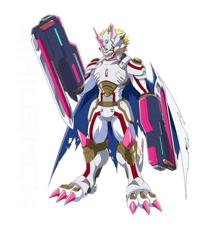 燃え滾る心の炎がさらに激しさを増したことで高純度の白い体表となった、大翼を持つ天竜型デジモン。強靭な爪が敵を切り裂く『ガリアフィッシャー』は低純度のクロンデジゾイドならば簡単に断ち割る威力を誇る。さらに羽を閉じて光弾のように突撃する『ドラゴニア』、広げた羽から輝きが流星群となって降り注ぐ『メテオルクス』など遠距離でも対応可能。最大の必殺技『グランノヴァ』は全身の力を集め口から最光度の火球を放ち、究極体であろうとも焦熱の星で包み込む。