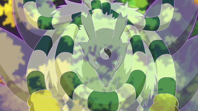 九本の尻尾をはやした巨大な青い狐の姿をした妖獣型デジモン。