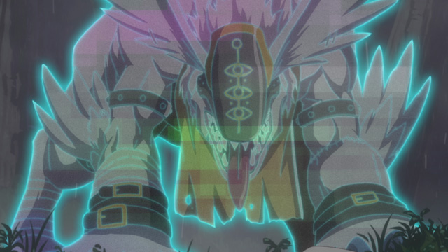 魔獣型デジモン。必殺技は頭部と両腕にある計3つの口から放つエネルギー弾「トリニティゴスペル」と、3つの尻尾で敵を串刺しにし強酸を体内に流し込む「アシッドインジェクション」。