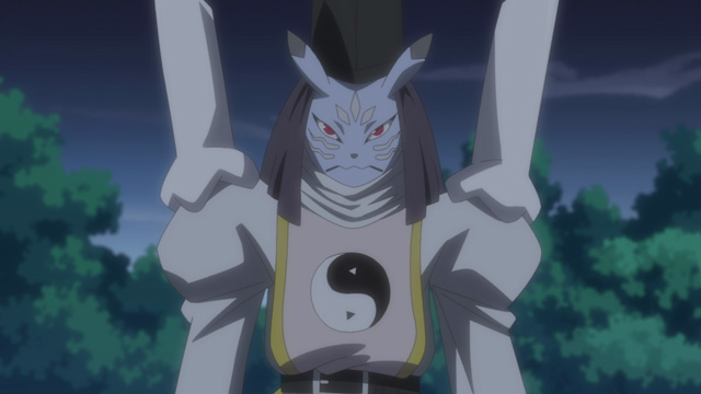 陰陽道に精通し、あらゆる技を駆使して戦う陰陽師デジモン。必殺技の『鬼門遁甲(きもんとんこう)』は巨大な筆で呪文を唱えながら空中に結界を描き、決して抜け出ることのできない永遠の迷路に敵を封じ込める恐ろしい技。