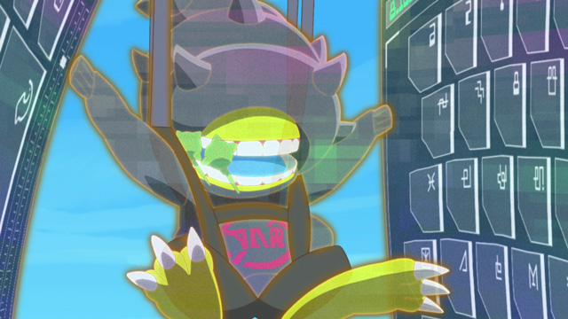 貝殻フードをかぶった突然変異型デジモン。必殺技は、2つの巨大ウィンドウで勢いよく挟む『デュアルプレッサー』と、ウィンドウを紙飛行機のようにして飛ばし敵を貫通する『ジュークラック』がある。