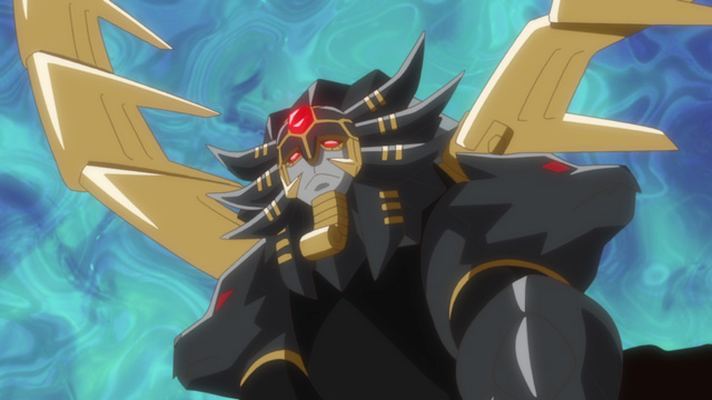 「死を招く闇の獣」と呼ばれ恐れられた、古代のデジモン。必殺技は咆哮と共に発する破壊光線『ダークブラスト』と、敵を死の闇に包み込んでしまう究極の消滅技『ネクロエクリプス』。