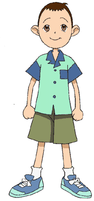 目立ちたがりで、答えがわからなくても手を挙げてわざとウケねらいの答えを言ってしまうという癖がある。佐川、太田と共にSOSという悪ガキトリオの一人。