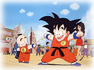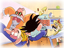 | 挑戦!!強敵だらけの天下一武道会 つよいやついっぱいくるんだろ!? もっと自分を鍛えたい一心で悟空は亀仙人の門を叩く。同じようにクリリンという少年も修行を受けるためにカメハウスにやってきた。悟空とクリリン、そしてくしゃみで変わる二重人格のランチさんを加えた4人と1匹のスーパーハードな修行生活がスタートした。 20キロの亀の甲羅を背負い、ランニングを兼ねた牛乳配達、手でやる畑仕事、工事現場の手伝い、サメのいる湖での水泳などなどめちゃくちゃに激しいものであった。 きっちりと修行をこなしたら天下一武道会に出場させるという亀仙人の約束を信じて二人は必至に修行をこなし、揃って武道会に出場することになった。 周囲の嘲りをよそに快進撃をつづけ、本選出場を決める悟空とクリリン、そして都に移り住んでいた狼牙風風拳のヤムチャ。 そのヤムチャを一回戦で破り、さらに準決勝でクリリンを破った謎の老人ジャッキー・チュン。同じくギラン、ナムを倒し激闘を勝ち抜いた悟空。決勝はジャッキー・チュンVS孫悟空という組み合わせになった。果たして勝敗はいかに!? |