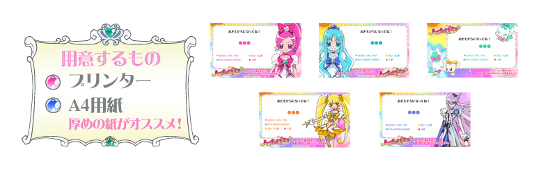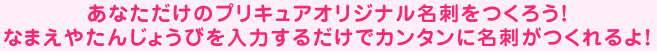 あなただけのプリキュアオリジナル名刺をつくろう!なまえやたんじょうびを入力するだけでカンタンに名刺が作れるよ!