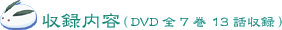 | FCBC-9001 片面1層 リニアPCM・ステレオ 2004年12月22日(水) ¥39,480(税込) < BOX特典 > キャラクターデザイン・総作画監督の大西陽一氏描きおこし! キャラクター総登場新作イラスト使用の特製収納BOX ※既発売のDVD第2巻初回特典の収納BOXとは全く異なります < 映像特典 > 「アフレコ風景」を収録(第1巻) 「原画ギャラリー」を収録(第5〜7巻) DVDのマルチアングル機能で、美麗な本編カットの原画素材(一部)をご覧頂けます! |