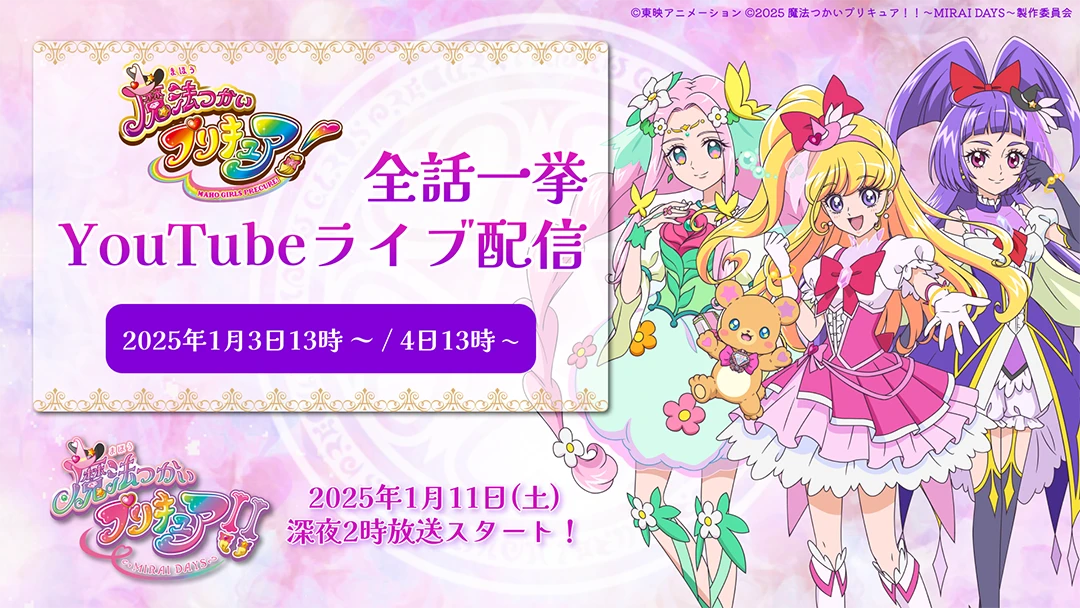 いよいよ2025年1月11日(土)深夜2時に初回放送がせまる「魔法つかいプリキュア!!~MIRAI DAYS~」に先駆けて、 前作「魔法つかいプリキュア!」を一気に振り返る特別無料配信を実施いたします!