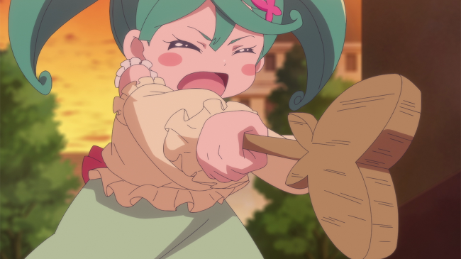 魔法界に到着した三人は、アイルが送り込んだブロック型モンスターに襲撃される。どうやらモンスターの狙いはひすいらしい。みらいとリコは街とひすいを守るため、すぐさまプリキュアに変身。モンスターを撃破した。