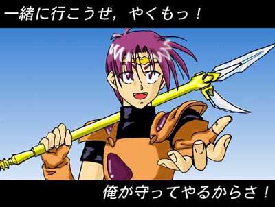 | どうしてもこの子を描きたくなって初めてパソコンで お絵描きしました。特にカラーリングが好きですね。 愛はあるのですがやはり表現したかったものに技術が 追いつかないです。これからもっとマシュラ達を描いて 精進します。ところで 台詞,クサイですか?(^^;) でもあれは誰に笑われようとも絶対入れたかったので(笑) |