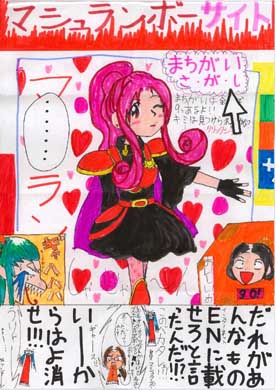 [管理人より]ユッキーさんより、精力的に投稿・展開中の「M家」シリーズの新作をお送りいただきました。どうもありがとうございました。「M家」とは何なのか?ユッキーさんからのお手紙によりますと、「マシュランボー」のキャラ達が家族のように見える所から生まれたコンセプトとの事です。「M」は勿論、「マシュランボー」の「M」です。さて、今回もカラフルでパワフルな作品をお送りいただきました。再放送やDVD化は、多くのファンの皆様の念願ですが、何とか可能性が出てきたかな・・・?それはともかく、さながら「西原理恵子」を彷彿とさせる勢いを感じます。女装版「マシュランボー」、こういうネタはやったモン勝ちですので、個人的にはオッケーな作品です。「M家」は、ブラック、ゴールド、サタン、オリジナルが楽しそうに共存しているのが微笑ましいですね。また、楽しい作品を送って下さいね。 |