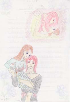 マシュランボーのイラストは数点描いたのですが、あえてこのイラストを送るのは、長い時間をかけて描いた愛着のあるものだからです。死の瞬間にヤクモは何を想ったのかな、と思って描きました。マシュランボーとヤクモのペアが好きなので、こんな絵になってしまいました。ちなみに、一番左下と一番右上と、その下とその横の一番大きい絵は、マシュランボーとヤクモの心の交際を描いたつもりです。 もう1点の方の、ヤクモを抱き上げている絵は、この前、中国風の小説を読んで眠った時に見た夢をイラストにしてみました。 |