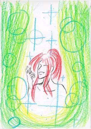 [管理人より]ハイペースで投稿していただいております、ユッキーさんの新作です。有難うございました。ユッキーさんならではの、独創的なイメージイラスト3部作で、タイトル、イラストの内容共に、とても詩的なですね。印象的な色づかいが、キャラクターのイメージを良く表現していると思います。 お手紙にありましたが、アニマックスでの放映へのお祝いコメント、有難うございます。DVD化は現時点では未定でして、実現させたいとは常に考えております。ご期待に沿えるよう、頑張りたいと思います。