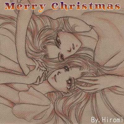 [管理人より]ひろみさんから頂いた、Xマスイラストです。どうもありがとうございました!イラストコーナー投稿用の作品ではないのですが、せっかく素敵な作品を頂いたので、コーナーにUPしてみました。イラスト全体の持つ優しい雰囲気や、目や手の表情、髪の流れから、2人への愛情がすごく伝わってきます。Xマスがあるって事は、新年ネタも有りですか?(^^)