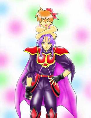 | 「イラストコーナー設置記念!!(遅い!)やっとスキャナを購入したの で、描いてみました。実はCG初めてです・・・まだ全然使い方わかってないのに、こんなの送 りつけてしまって、ごめんなさいっっ。しかも、服とか色とか大嘘ついてます(汗)」 |