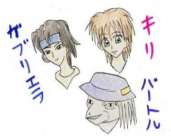 | とにかく、ガブリエラを描いてみたい!!と思って描いてみました。 その後、ガブリエラだけじゃ寂しいので、キリとバートルも描いてみました。 なぜ、ギターイではなくキリなのかというと、結構キリがお気に入りだからです。 もし、本当にキリという人間がいたら、ビンカと同じくらい活躍できたのではないか と思います。 | バートルって、若い頃は案外、美人だったりして… と思って描きました。 肌の色は、絶対に間違っていると思います。 |