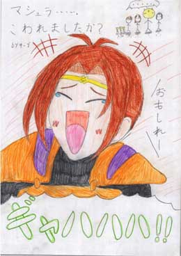 [管理人より]ぷちとまとさんから、早くも投稿第2弾です。どうもありがとうございました。掲示板で展開している小説同様、イラストのボリュームもスゴイですね(^^)。何で笑っているのか、作者にも分からないという、謎のシチュエーションの3部作に圧倒されました。どの作品もキャラの表情が生き生きとして、楽しい作品ですね。こたつで昼寝中のマシュラがなんともカワイイです。でも、おっしゃる通り、ちょっと季節外れかも?今日、東京は夏日なので、一層暑さを感じてしまいます(^^)。 |
