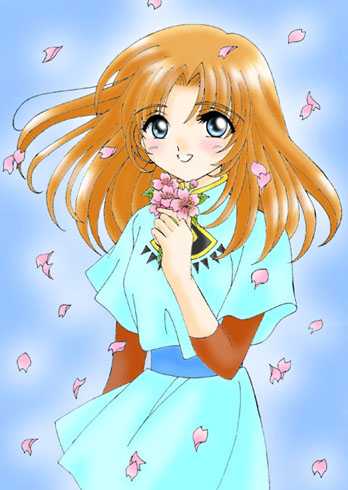 | ヤクモの視線の先にはマシュラがいるといったイメージで描きました。そ うは見えないと思いますが(汗)。彼女の優しい雰囲気だけでも表現できていたらい いんですけど、何となく眠そうですね(汗)。 |