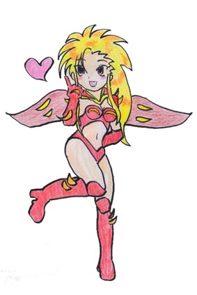 | [管理人より]‘01.6/24に開催されたオンリーイベントで、なこぅさんにお会いした際にいただきました、通算3作目のイラストです。どうもありがとうございました!(個人的にいただいた作品ですが、ご好意により、UPさせていただきました。)ほのぼのタッチのピクシーカードリアンです。筆ペンによる描線と、色鉛筆による彩色が、非常に味のある雰囲気を醸し出していて、キャラへの愛情を感じる作品になっていると思います。 |