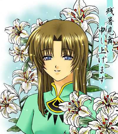 [管理人より]マオミンさんからいただいた、残暑見舞いイラストです。どうもありがとうございました!(アップの都合上、解像度を落としています。ご了承下さい)キャラの描写もさることながら、ユリの花の描写が素晴らしいです!ヤクモと花の取り合わせは実に映えますね。さすがはヒロインといった所でしょうか(^^)。