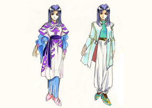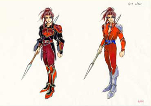 ヤクモ第2稿のコスチューム・バリエーション。左のデザインが1番人気だったそうですが、「模様を動かすのが大変」という理由でボツ。それにしても、決定稿を見なれていると、どちらも新鮮に見えますね。