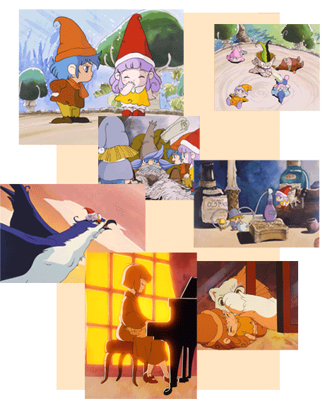 村長の孫娘のメモルは、明るく活発で、ちょっといたずら好きな女の子。毎日友だちのポピット、ルパング、ピーと一緒に、ミミズクのボォボォに乗って森中で遊びまわっています。