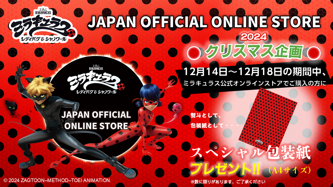 2024年12月14日(土)~18日(水)の期間中、ミラキュラス公式オンラインストアで商品をご購入のお客様にスペシャル包装紙(A4サイズ)をプレゼント!