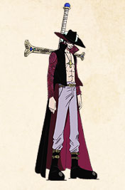 異名“鷹の目ミホーク”。世界政府公認の王下七武海の一人であり、ゾロが目標とする世界最強の剣士。