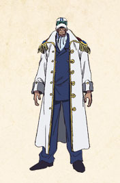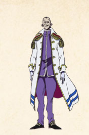 海軍中将。ナバロンの司令官。のんびりと構えているが指揮は的確。いち早く変装したルフィ達の正体を見抜く。趣味は釣りで「一度針にかかった獲物は絶対に逃さない」主義。ブロッコリーとにんじんとピーマンが苦手。