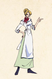 1000人を超える海軍士官たちのために厨房を仕切る誇り高き美人料理長。自分が認めた料理人以外は厨房に入ることを許さない。モットーは「料理は心意気でつくるもの」。