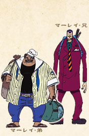 マリージョアの海軍本部からやってきた料理人。贅沢な食材を使いVIPの食事を提供してきたうぬぼれ兄弟。ナバロンの厨房のチーフになるためやってきたが、ナミのでたらめな道案内でなかなか厨房にたどり着けない・・・