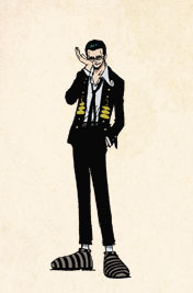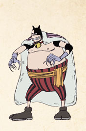 催眠術の使い手。でも自分も一緒に催眠術にかかってしまう。クロのいない間はクロネコ海賊団の船長だった。