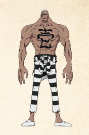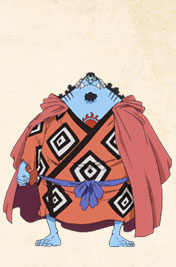 魚人海賊団船長。魚人であるため、その実力は海中で大いに発揮され、魚たちと会話することもできる。インペルダウンからの脱獄後、マリンフォードでの頂上戦争に参加し、ルフィを援護する。