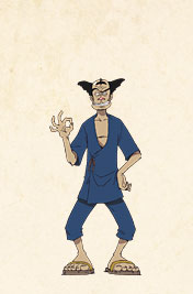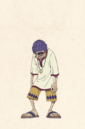 ローグタウンにある武器屋のオヤジ。ゾロの持つ“和同一文字”を騙しとろうとしたが、たしぎに邪魔されて失敗するもゾロの剣士としての器に惚れ込み妖刀 “三代鬼徹”と家宝である“雪走”を譲った。